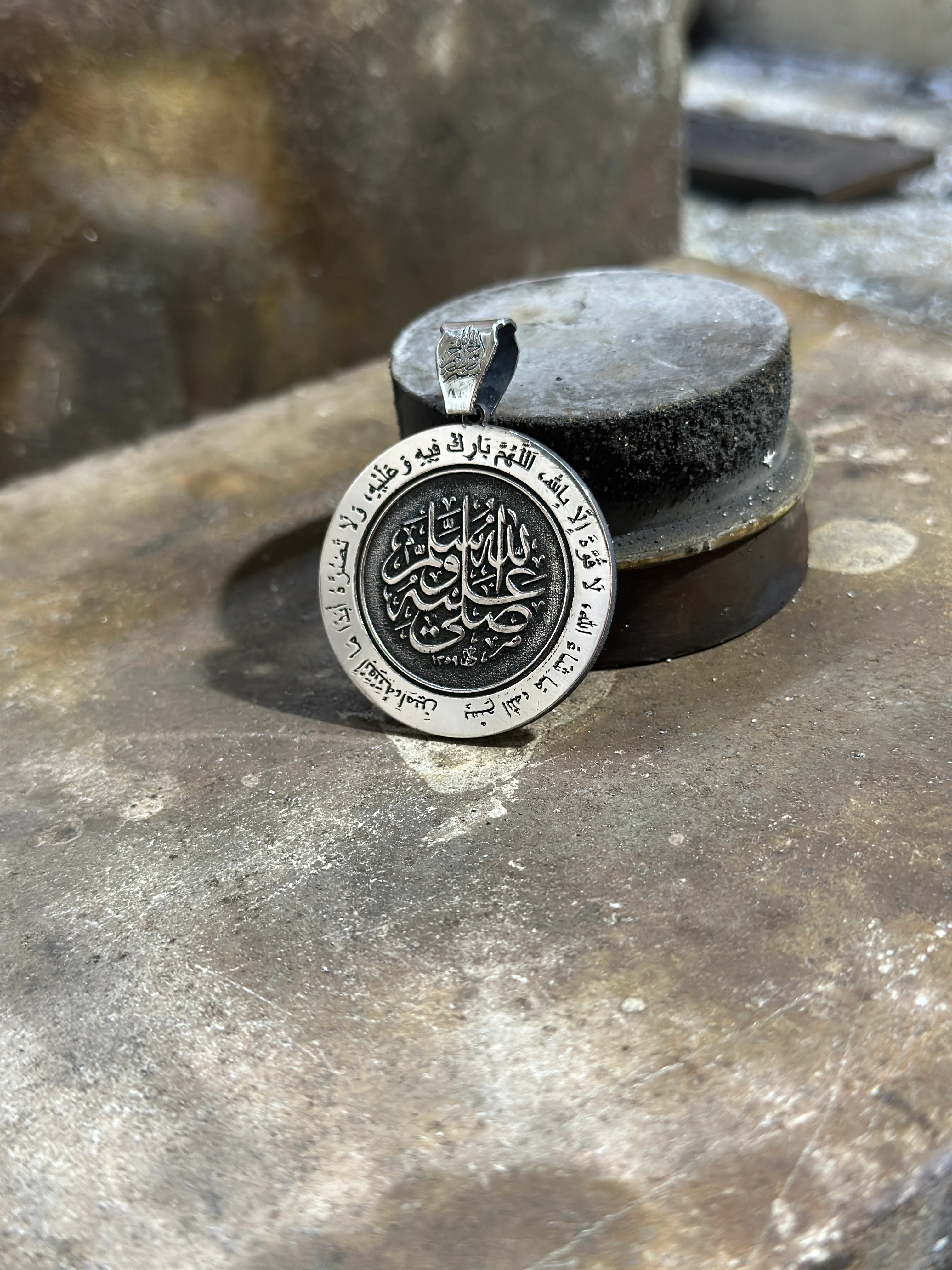 ➡️2.Kısım : “MâşâAllâh lâ kuvvete illâ billâh. Allâhümme bârik fîhi ve aleyhi ve lâ tadurrahû” Âmîn. ( Allah’ım onu değerli kıl ve ona zarar gelmesine müsade etme ) yazıldır. Orta kısımda Mührü Şerif İşlidir.